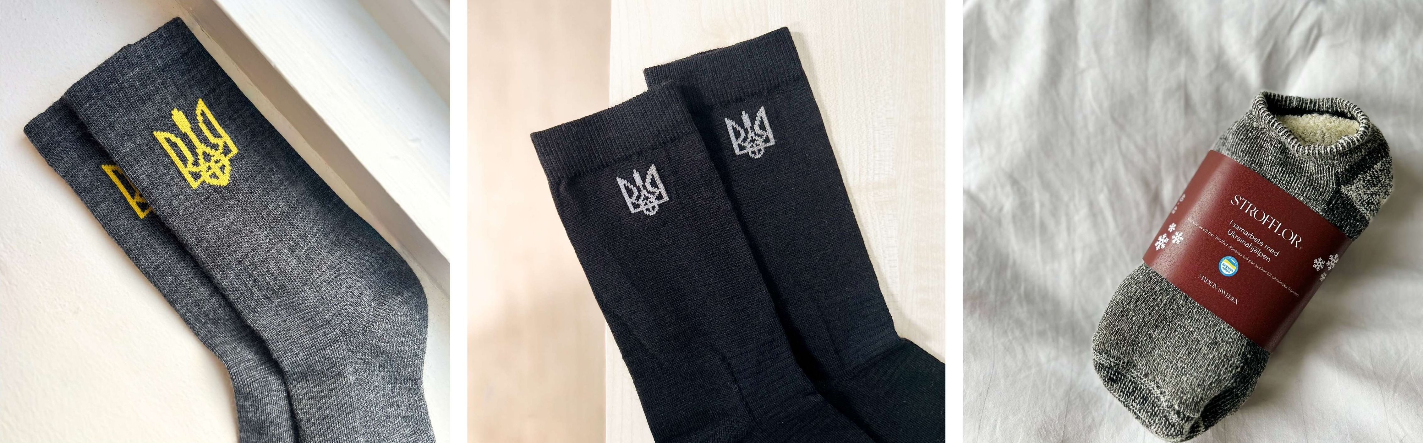 Våra strumpor för Ukraina är framtagna i samarbete med Ukrainahjälpen. Varje köp gör skillnad, antingen genom en pengadonation, strumpdonation eller båda. Klicka på en modell för att se hur just ditt köp bidrar.